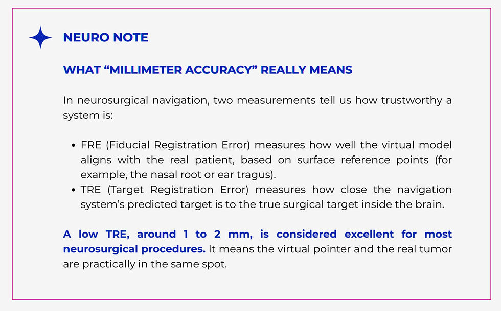The PMRN system proved accurate enough for most routine brain surgeries, such as hematoma evacuation, ventricular drainage, or tumor resections (like meningiomas).